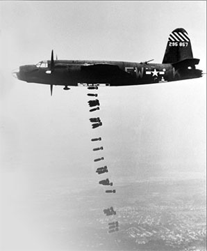 The weapons of the industrial age were designed to maximize death while minimizing human skill, risk, and engagement in it. In terms of death production they were a resounding success. A side feature was perhaps that they removed the killer somewhat further from the killing than had previously been the case, and thus robbed the deaths further of their "meaning," if they could be said to have any. A bombardier who drops his payload from 2000 feet has limited control of the targeting, and sees none of the victims die.